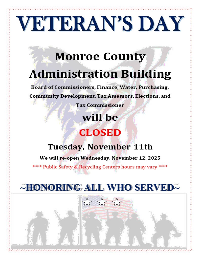 Monroe County Administrative Offices to be Closed on Tuesday, Nov. 11 for Veterans Day