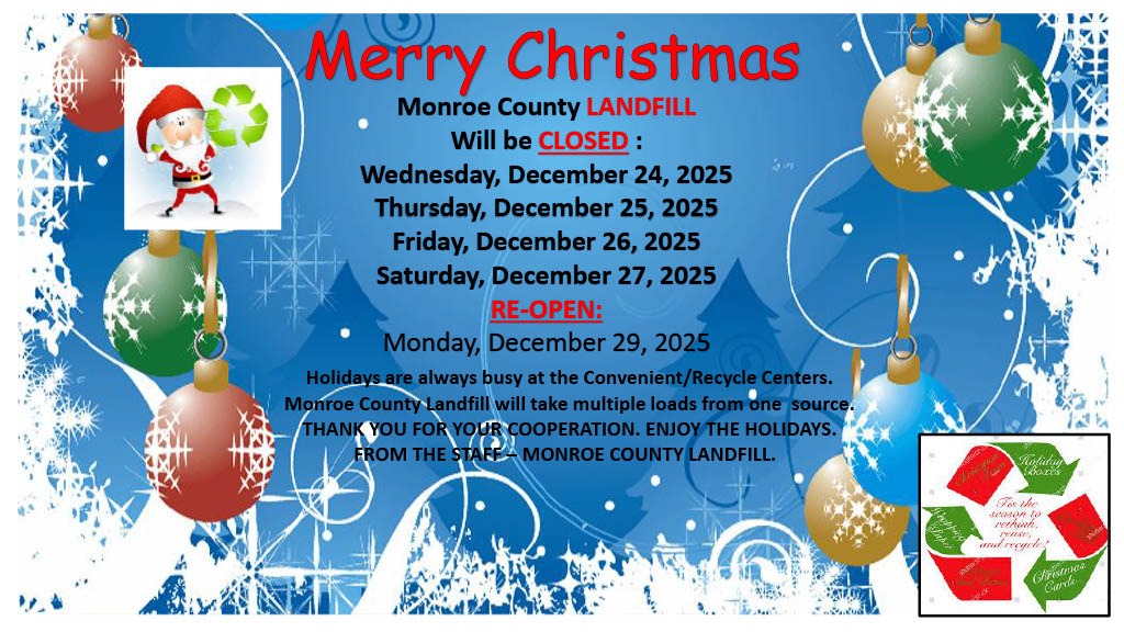 Monroe County Landfill to be Closed on Wednesday, Dec. 24, Thursday, Dec. 25, Friday, Dec. 26, and Saturday, Dec. 27 for Christmas Break