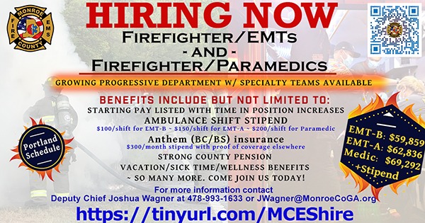 Please apply at the following link: https://www.cognitoforms.com/MGRC1/MonroeCountyEmploymentApplicationForFireEMS